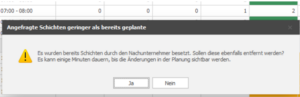 Dadurch wird eine Anfrage für diese Schicht im System des Nachunternehmers erstellt. Diese steht zur Annahme zu Verfügung.