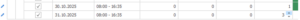 Diese Zeile kann optional zeitlich eingeschränkt werden. Das Datum bezieht sich dabei auf das Datum der zu berechnenden Schicht.