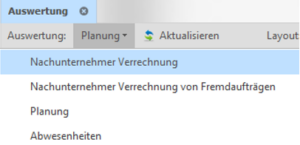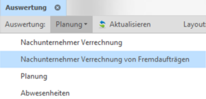 Auf Seite des Nachunternehmers steht in Version 1nur eine Auswertung zu Verfügung. In dieser sind alle vom Auftraggeber berechneten und übermittelten Schichten enthalten.