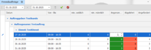Nach erfolgter Annahme ist dieser Auftrag mit Diensten und Schichtdefinitionen im System des Nachunternehmers zur Planung bereit. Der Nachunternehmer plant die offenen Positionen.