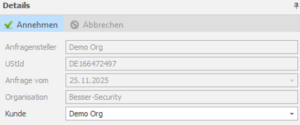 Nach erfolgter Anmeldung steht noch die Annahme der Zusammenarbeit mit dem Auftraggeber aus. Diese erfolgt in der Kundenzuordnung.