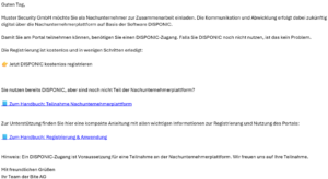 Sind Sie als Nachunternehmer noch nicht Teil der Nachunternehmerplattform und nutzen bisher auch kein DISPONIC, dann kann mit einem Klick in der E-Mail auf den Link