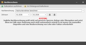 Das Fenster [Nachberechnen] wurde ergänzt um die Option [Nachunternehmer berechnen].