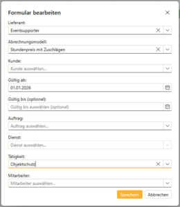 Es können beliebig viele Mehrfach-nutzbare Lieferanten-Mitarbeiter angelegt werden. Pro Dienst/Tag muss aber für die Auftragsvergabe immer der gleiche Mehrfach-nutzbarer Lieferanten-Mitarbeiter verwendet werden.