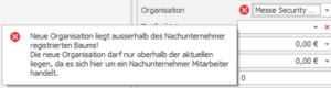 Mehrfach-nutzbare Lieferanten-Mitarbeiter können nicht in einen anderen Organisationsbaum verschoben werden welcher eine andere, oder nicht der registrierten Organisation untergeordnet ist.