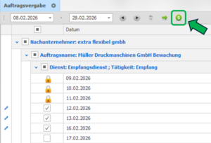 Wurde eine Schicht vom Nachunternehmer angenommen, so ist diese mit einem grünen Indikator versehen.