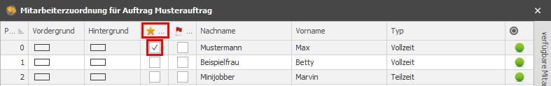 Über den grünen Haken wird der entsprechende Mitarbeiter in den Dienst hineingetauscht und der ursprünglich geplante Mitarbeiter dadurch ersetzt.