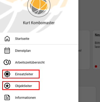 Es ist möglich, dass ein Mitarbeiter sowohl die Einsatzleiter-Freigabe besitzt als auch als Objektleiter für ein oder mehrere Aufträge eingetragen ist. In diesem Fall gibt es Zugriff auf beide Menüpunkte.