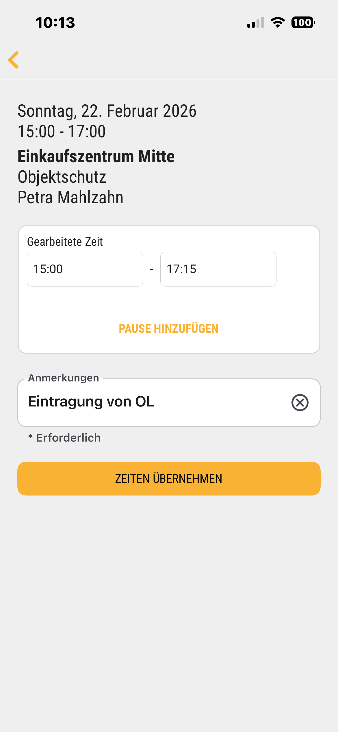 Zeiten für Mitarbeiter eintragen
